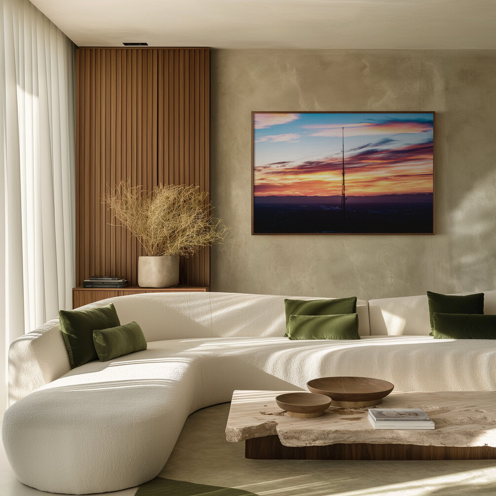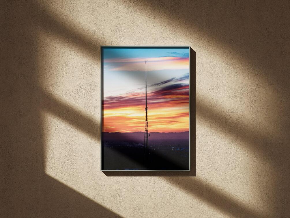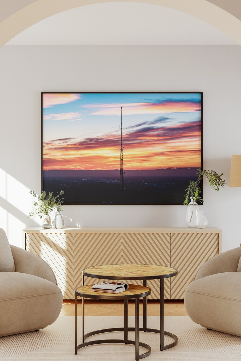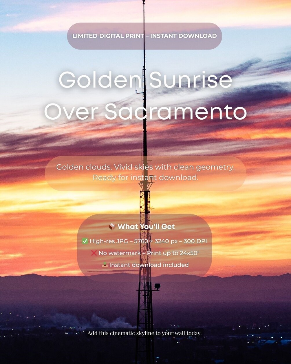 Golden Sunrise Over Sacramento – Cinematic Broadcast Tower Wall Art